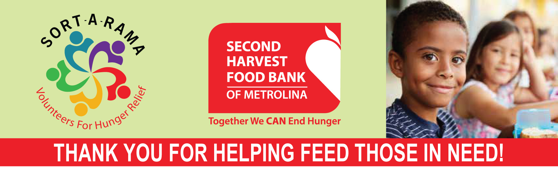 Interested in more information on Sort-A-Rama 2026? Email our Special Events Coordinator, Celia Farmer, at cfarmer@secondharvestmetrolina.org.